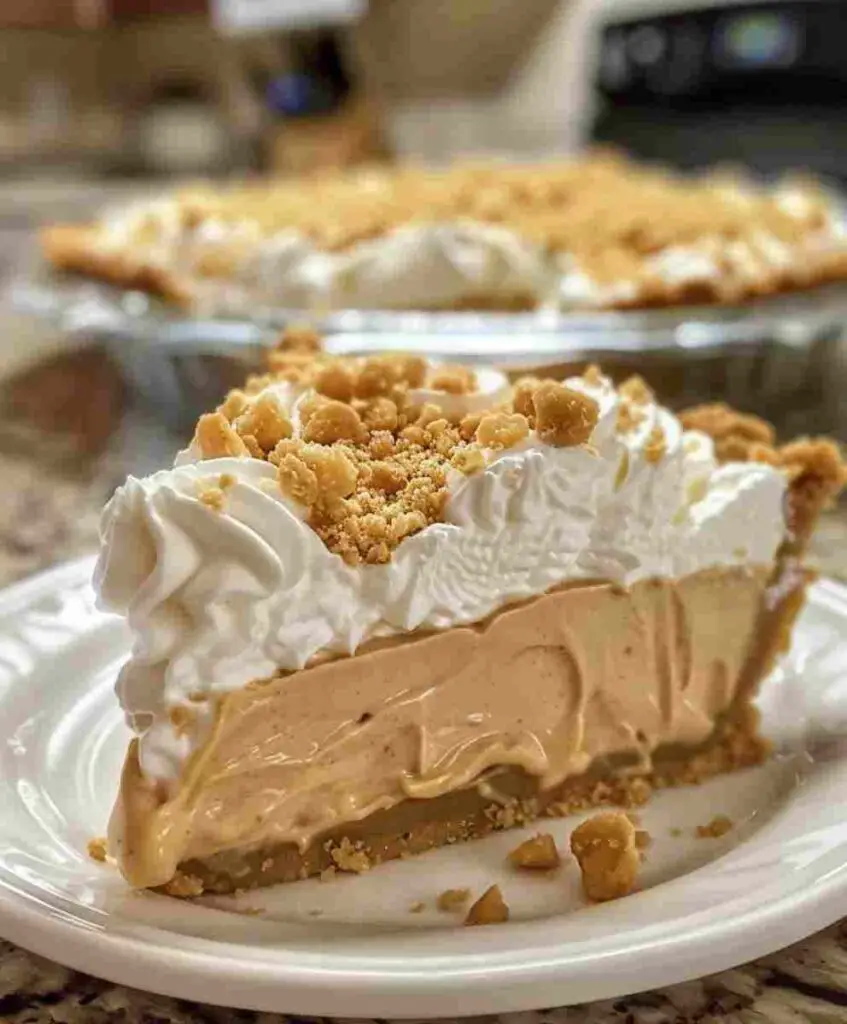 The pie features layers of silky vanilla pudding mixed with peanut butter, folded into airy whipped topping, and sprinkled with a crunchy crumble mixture that gives every bite texture and depth. Best of all? You don’t need to be a professional baker to make it. With simple pantry staples and under 20 minutes of prep, this recipe is ideal for anyone looking for quick dessert ideas or a simple family recipe to serve at gatherings, holidays, or casual weeknight dinners.