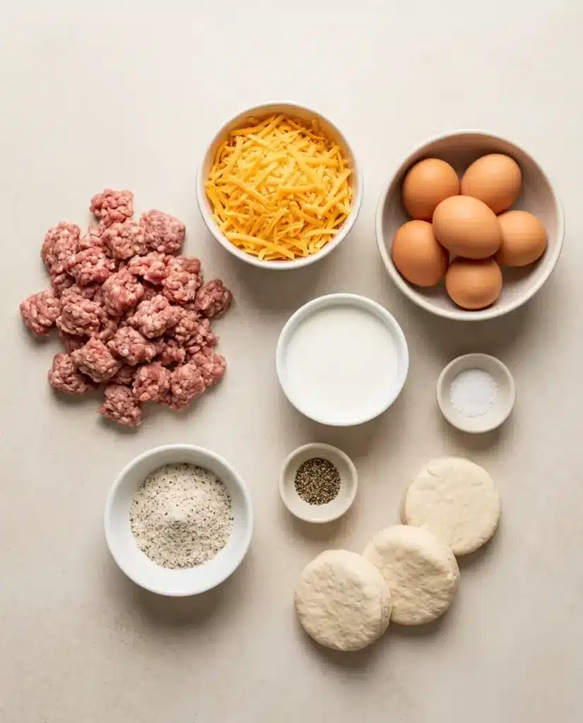 Sausage (1 lb) – Adds savory flavor, protein, and rich texture. Breakfast sausage provides the classic Southern taste that makes this casserole irresistible.