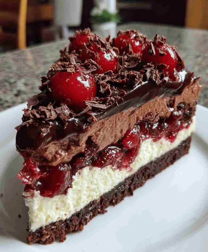 Perfect for easy dessert recipes, family comfort food, or special celebrations, this Black Forest-inspired cheesecake brings classic flavors into a stunningly elegant presentation. Whether you’re hosting a dinner party or looking for a luxurious treat for your family, this recipe delivers on taste, texture, and visual appeal while remaining approachable for home bakers.