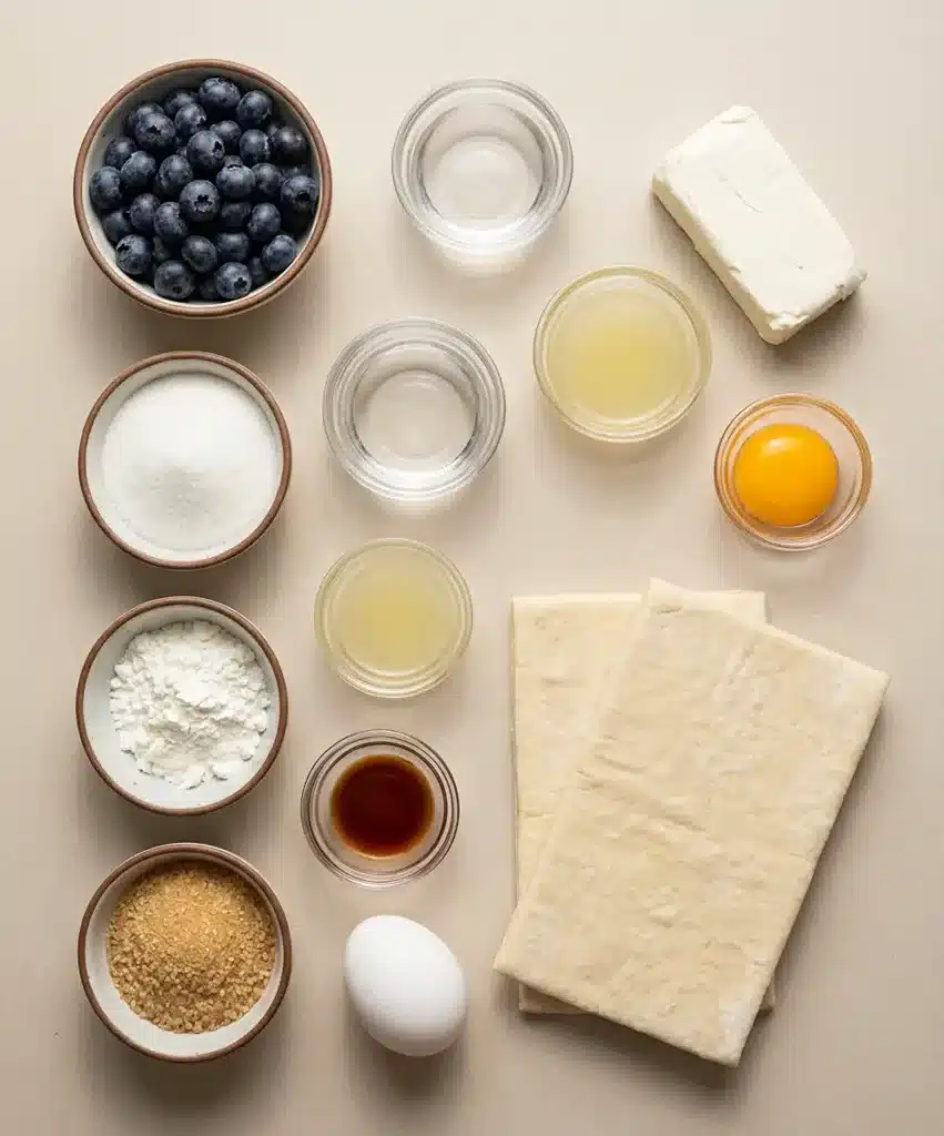 - Sugar: Sweetens both the blueberry mixture and cream cheese filling.