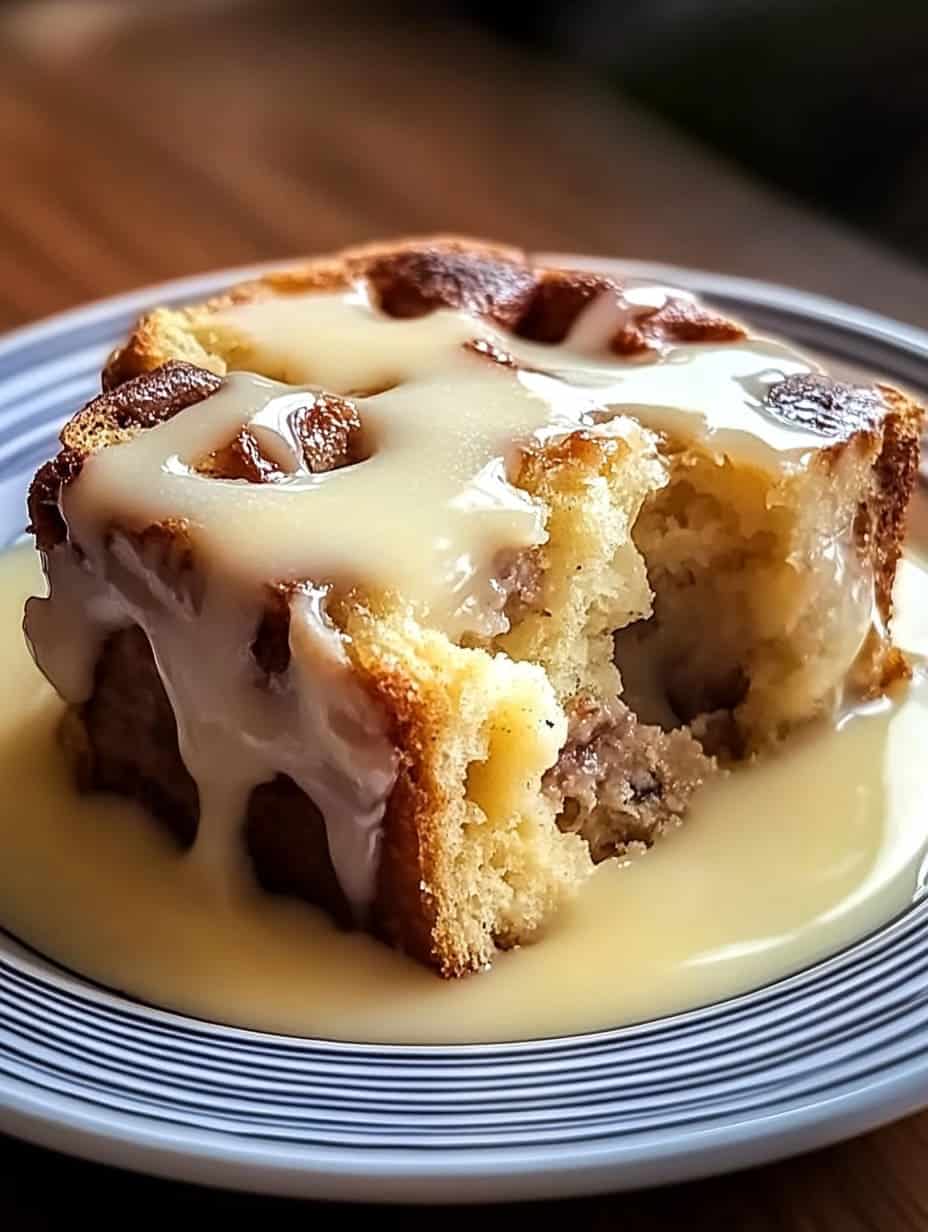 This classic bread pudding with vanilla sauce is the ultimate comfort food dessert. Imagine soft, custardy bread infused with cinnamon and vanilla, studded with sweet raisins, and baked until golden perfection. The magic happens when you drizzle it with a warm, buttery vanilla sauce that seeps into every bite.
