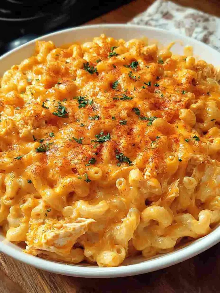 This dish strikes the perfect balance between cozy and exciting—ideal for busy weeknights, game-day gatherings, or a budget-friendly meal that tastes like it came straight from a restaurant. Whether you’re looking for easy dinner ideas, healthy weeknight meals, or something satisfying to feed a crowd, this baked Buffalo Chicken Mac and Cheese will quickly earn a spot in your regular dinner rotation.