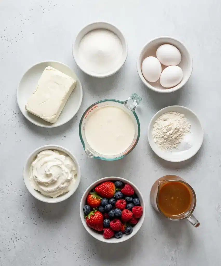 Heavy Cream – Adds richness and creates the smooth, custard-like consistency that sets this cheesecake apart from dense traditional versions. Lighter cream can be used, but heavy cream delivers the most indulgent result.