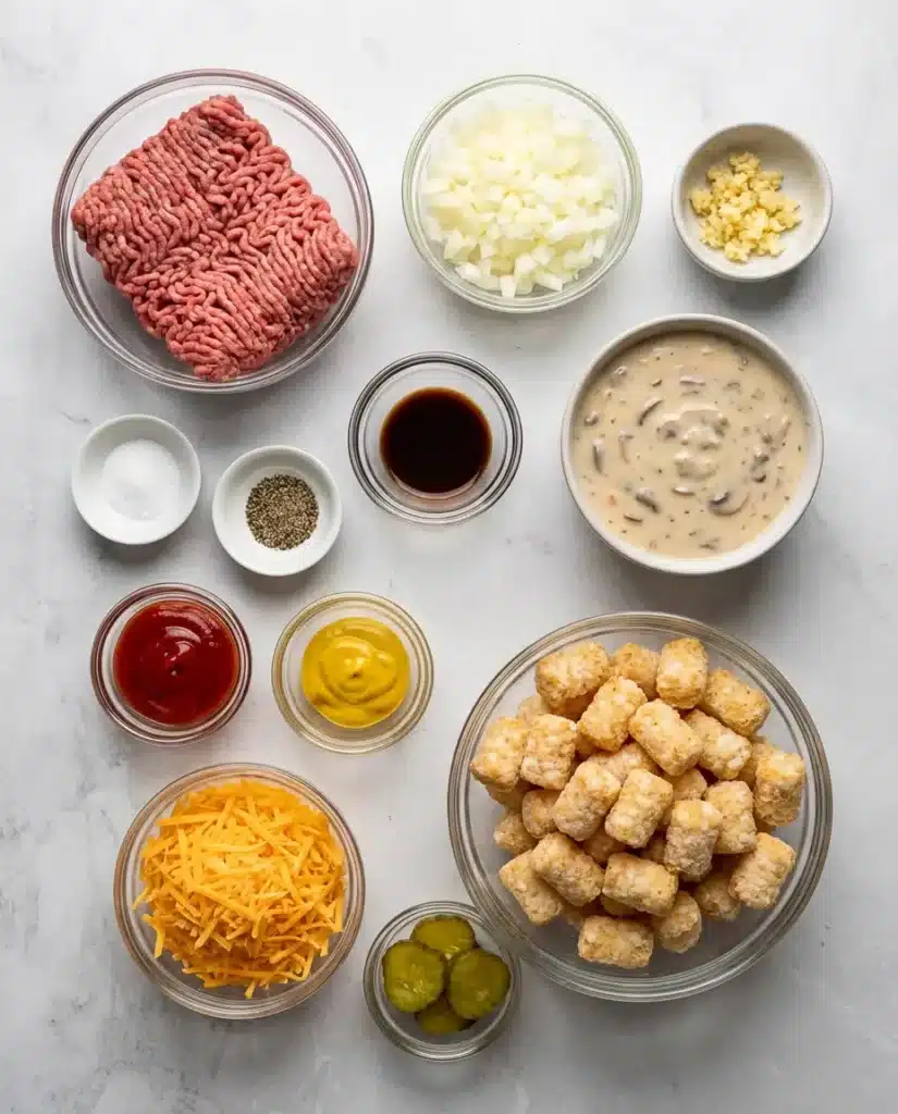 Frozen Tater Tots (32 oz bag): Crispy, golden topping that makes this casserole fun and kid-friendly.