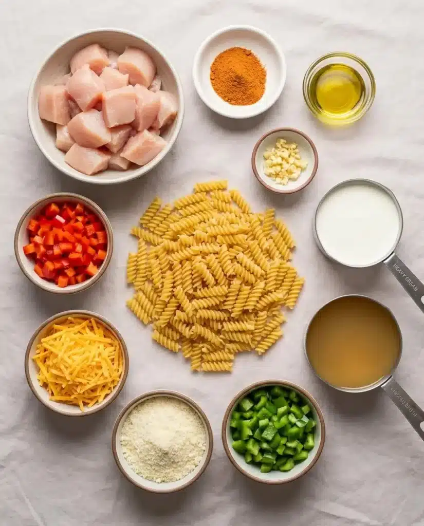 - Heavy cream & chicken broth: Create a rich, smooth sauce that coats the pasta and chicken.