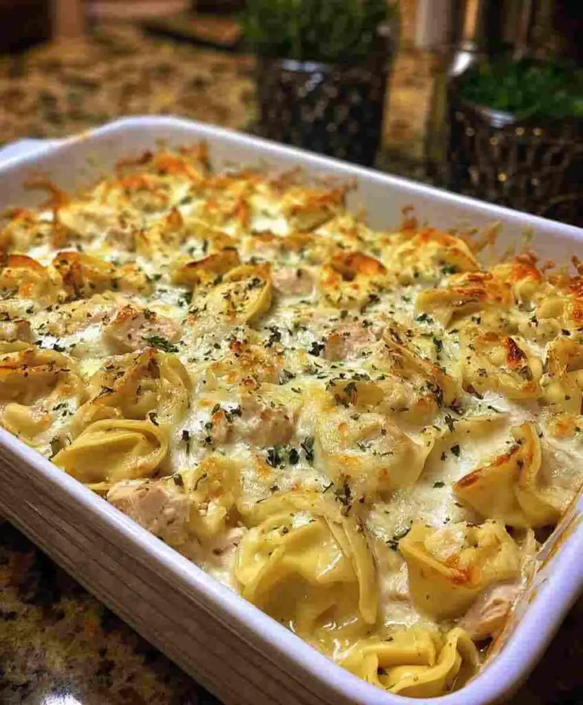 The idea behind this Chicken Alfredo Tortellini Casserole combines two beloved Italian-American classics—creamy Alfredo pasta and cheesy baked casseroles. Originating from the comforting flavors of American comfort food, it brings together Italy’s love for pasta with America’s passion for hearty, oven-baked dishes.