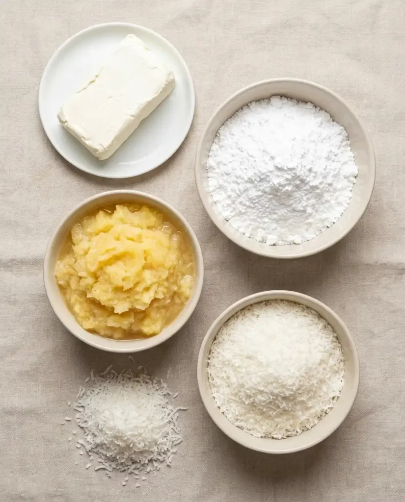 - Crushed Pineapple – Adds natural sweetness and a slight tang, balancing the richness of the cream cheese.