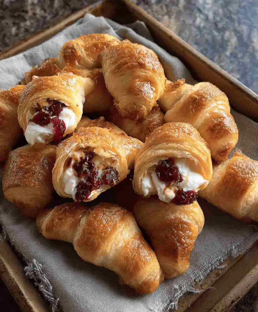 Each bite combines buttery pastry layers with smooth vanilla-scented cream cheese and a touch of cranberry brightness, creating the perfect balance between rich and refreshing. The best part? You only need a handful of ingredients and less than 30 minutes to whip them up. This recipe isn’t just a crowd-pleaser—it’s a budget-friendly recipe that brings gourmet flavor without the stress. Perfect for busy families, brunches, or last-minute party trays, it’s the definition of easy holiday cooking at home.