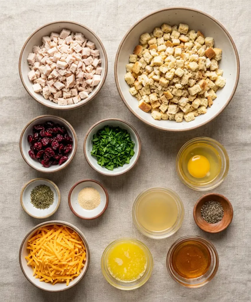 Cooked Turkey: Provides hearty, protein-rich flavor and helps bind the stuffing balls.