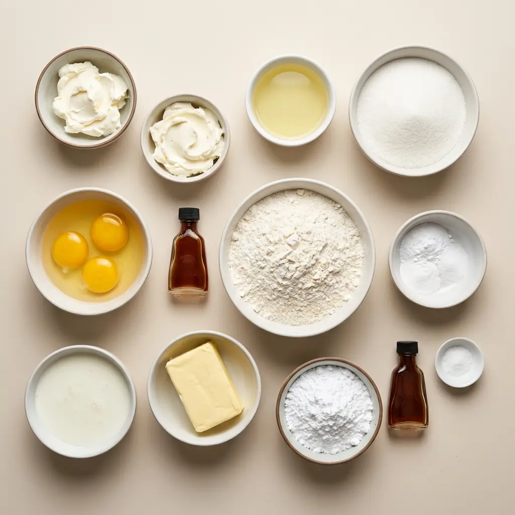 Cream Cheese – The star ingredient that adds richness, moisture, and a slightly tangy flavor that sets this cake apart from ordinary vanilla cakes.
