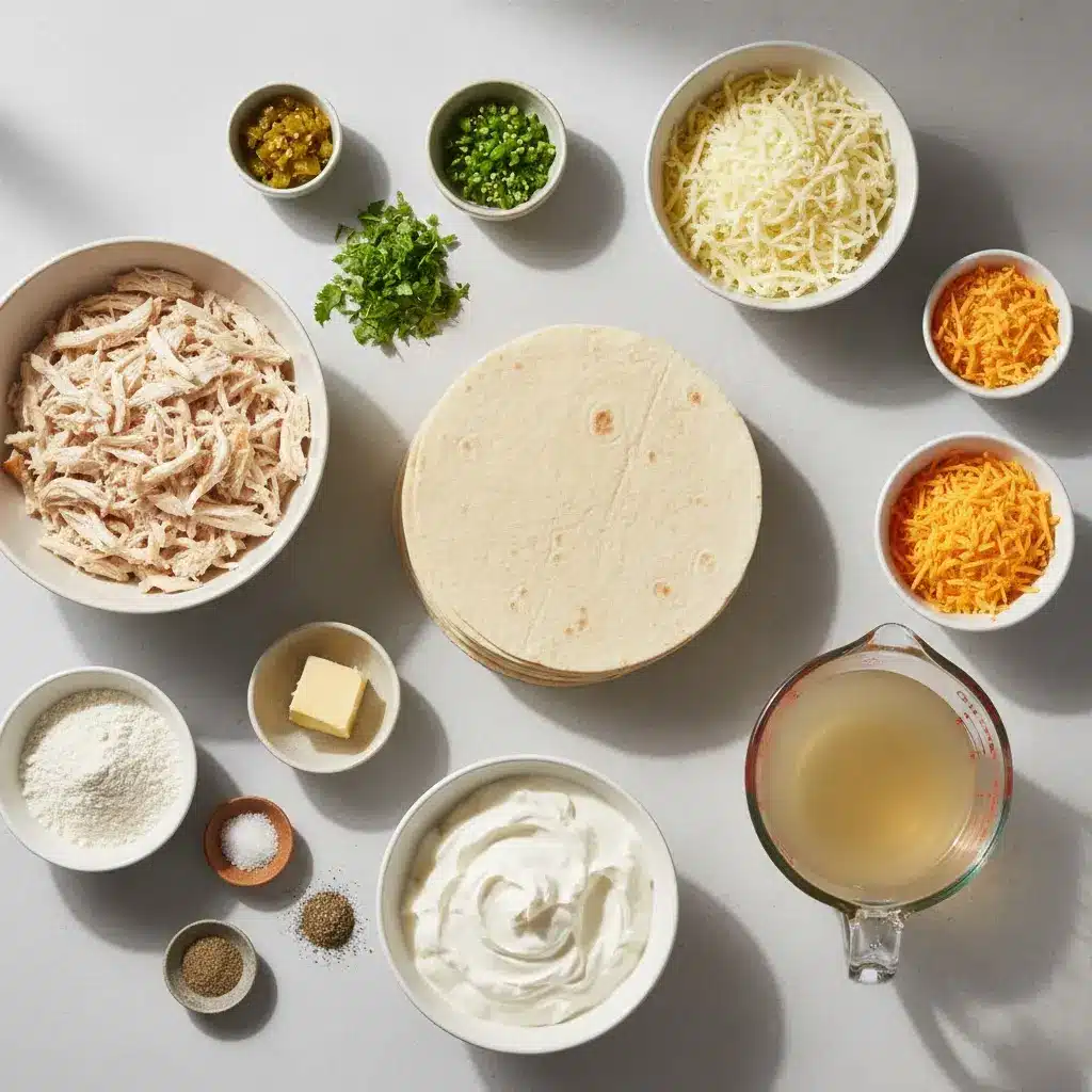 Warm the tortillas slightly before filling to prevent cracking. Do not overfill the tortillas to keep them from bursting during baking. For extra flavor, season the chicken lightly before mixing with the other ingredients. If the sauce thickens too much, whisk in a splash of broth before pouring. For a golden top, bake uncovered and watch closely during the final minutes.