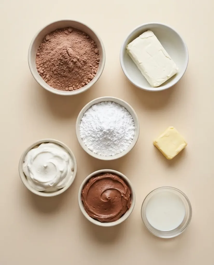 Chocolate Cake Mix (1 box): The base of this recipe — quick, moist, and foolproof. Use any brand you love. The chocolate flavor pairs perfectly with the creamy filling.