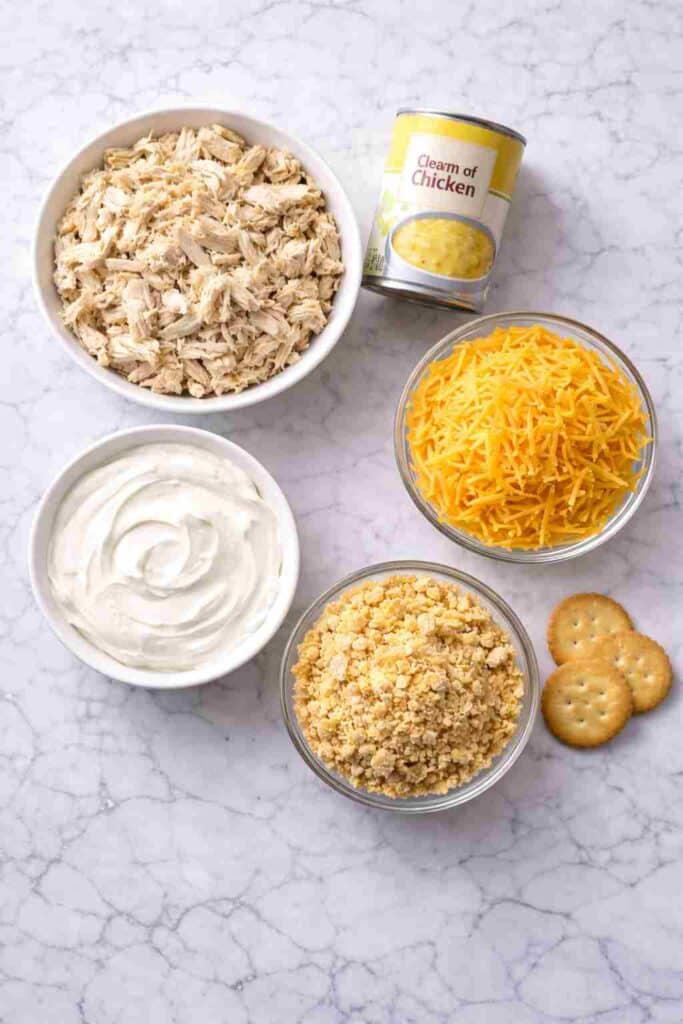 Use rotisserie chicken for the easiest prep and best flavor. Crush the crackers finely for even coverage and a uniform crunchy topping. Lightly grease the baking dish to prevent sticking and make serving easier. Spread the filling evenly so it heats through properly. Bake uncovered so the topping becomes golden and crisp.
