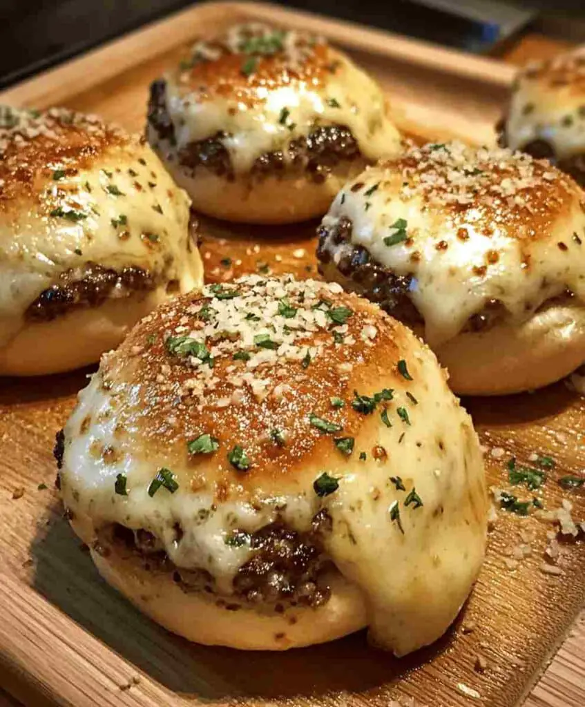 These Garlic Parmesan Cheeseburger Bombs are buttery, cheesy, and bursting with juicy beef flavor. Stuffed inside soft rolls and brushed with a garlicky Parmesan glaze — they’re the ultimate party or game-day snack!