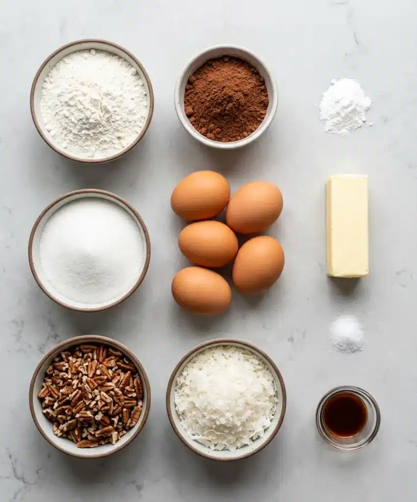 Pecans – Add crunch and nutty richness, completing the iconic German chocolate flavor profile.