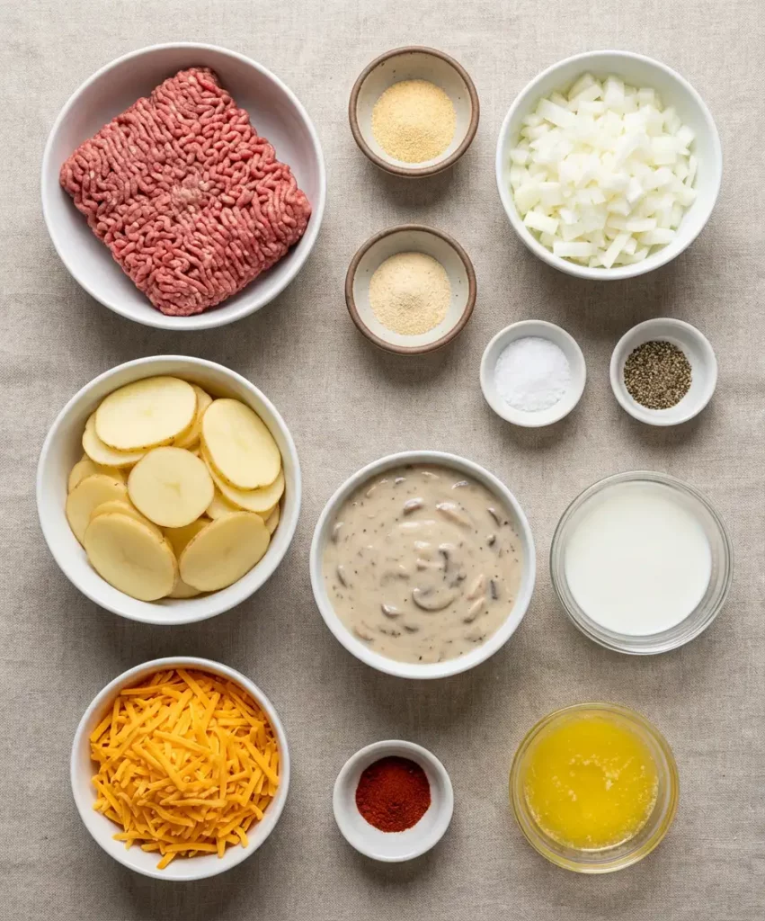 - One-dish meal: All-in-one comfort food—potatoes, beef, and cheese in a single casserole.