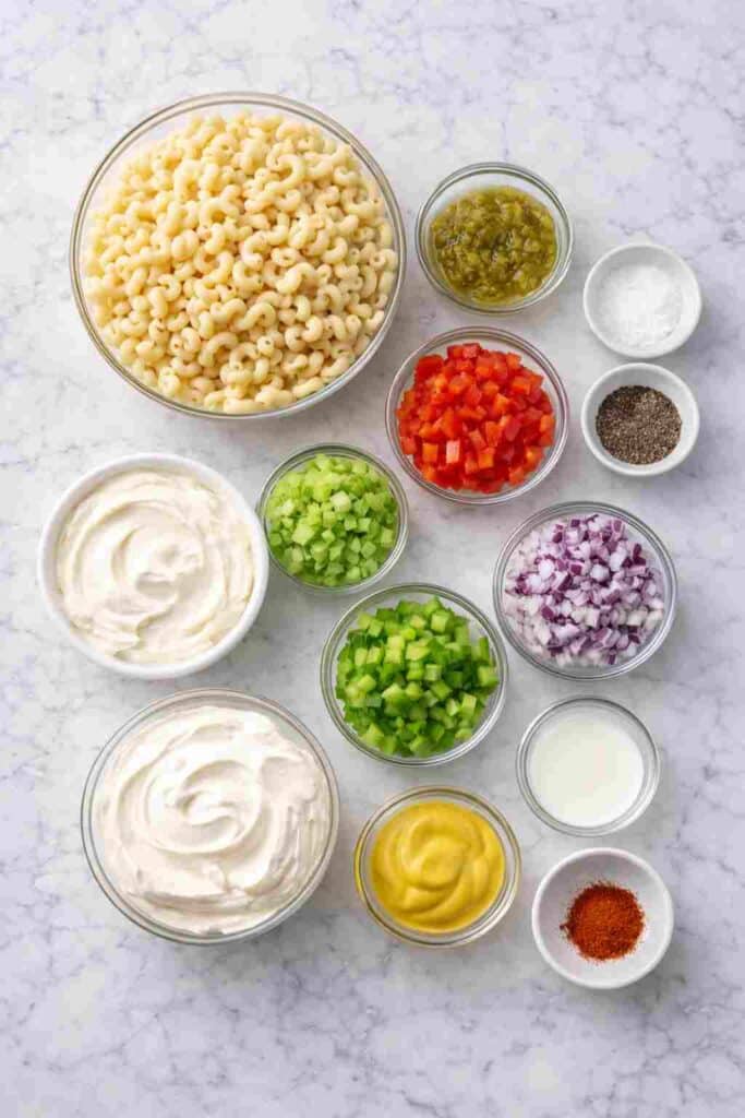 Elbow Macaroni – The foundation of the salad, providing tender texture and holding the creamy dressing perfectly