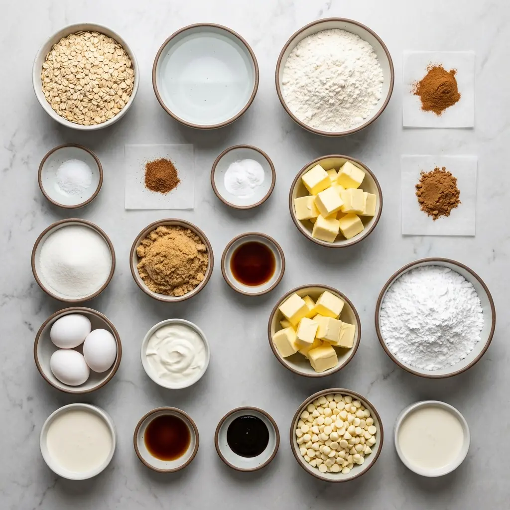 Ground Cinnamon and Nutmeg – Warm spices that give this cake its cozy, nostalgic flavor reminiscent of classic oatmeal cookies.