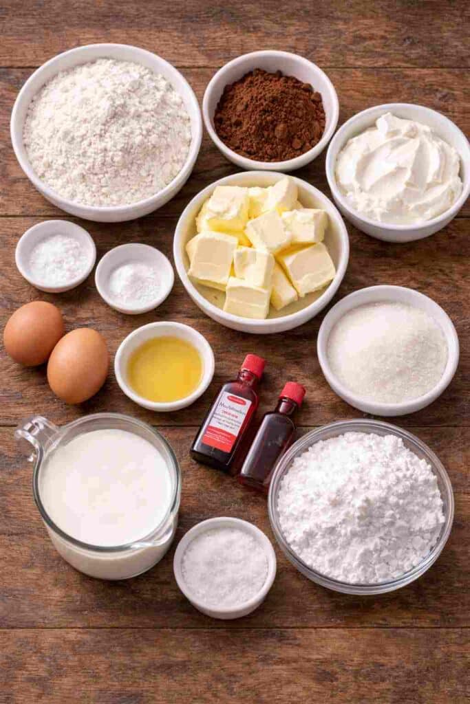 Buttermilk adds moisture and slight tang, creating the classic red velvet flavor and soft texture.