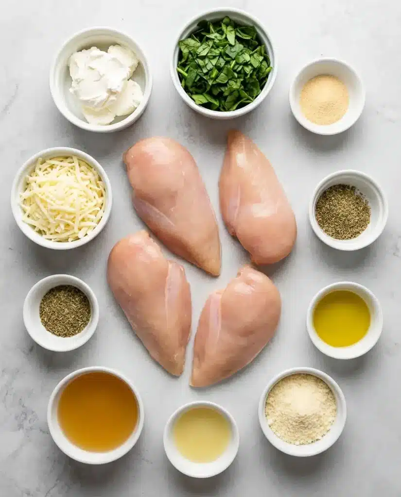 Cream Cheese – The heart of the filling, providing richness and a smooth, luxurious texture that mimics restaurant-quality stuffed chicken.