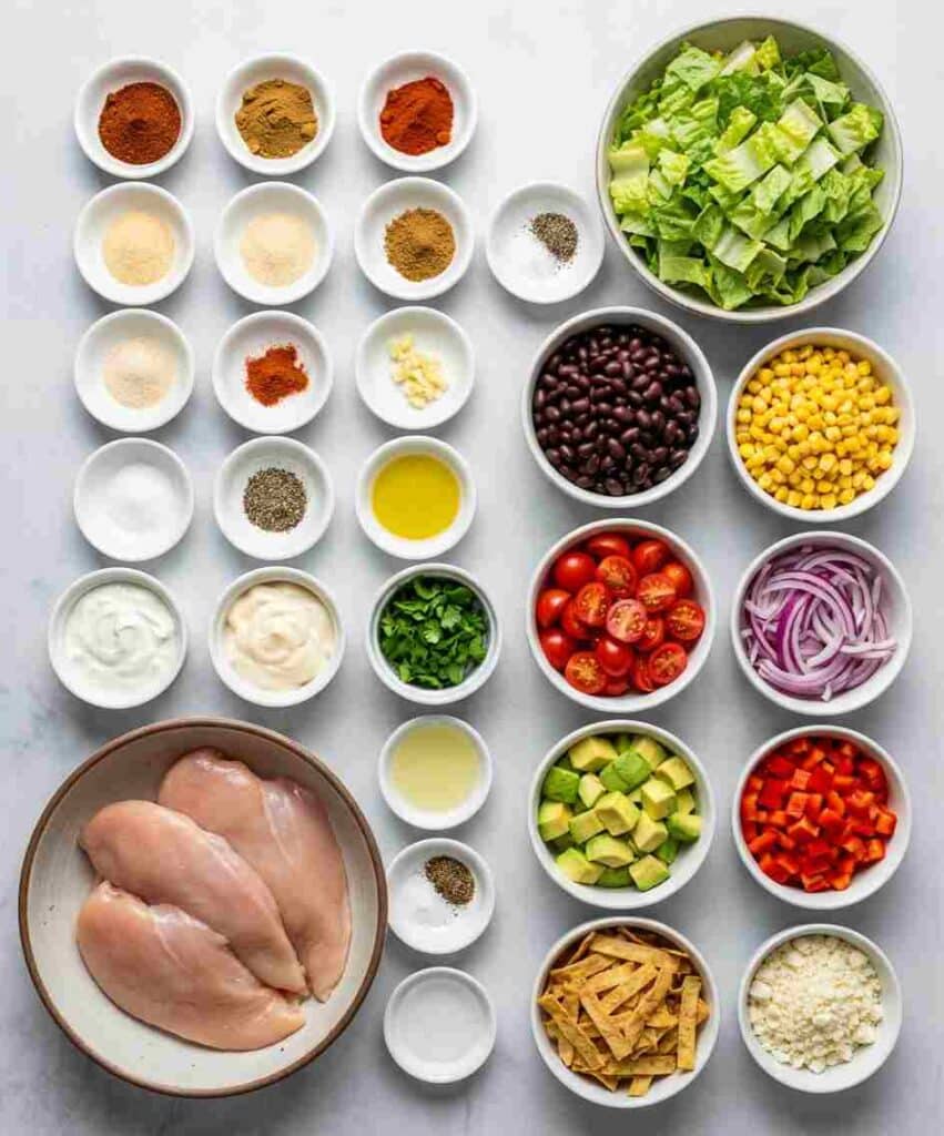 Chili powder, cumin, smoked paprika, garlic powder, onion powder, and optional cayenne create a smoky, slightly spicy flavor profile that defines this salad.