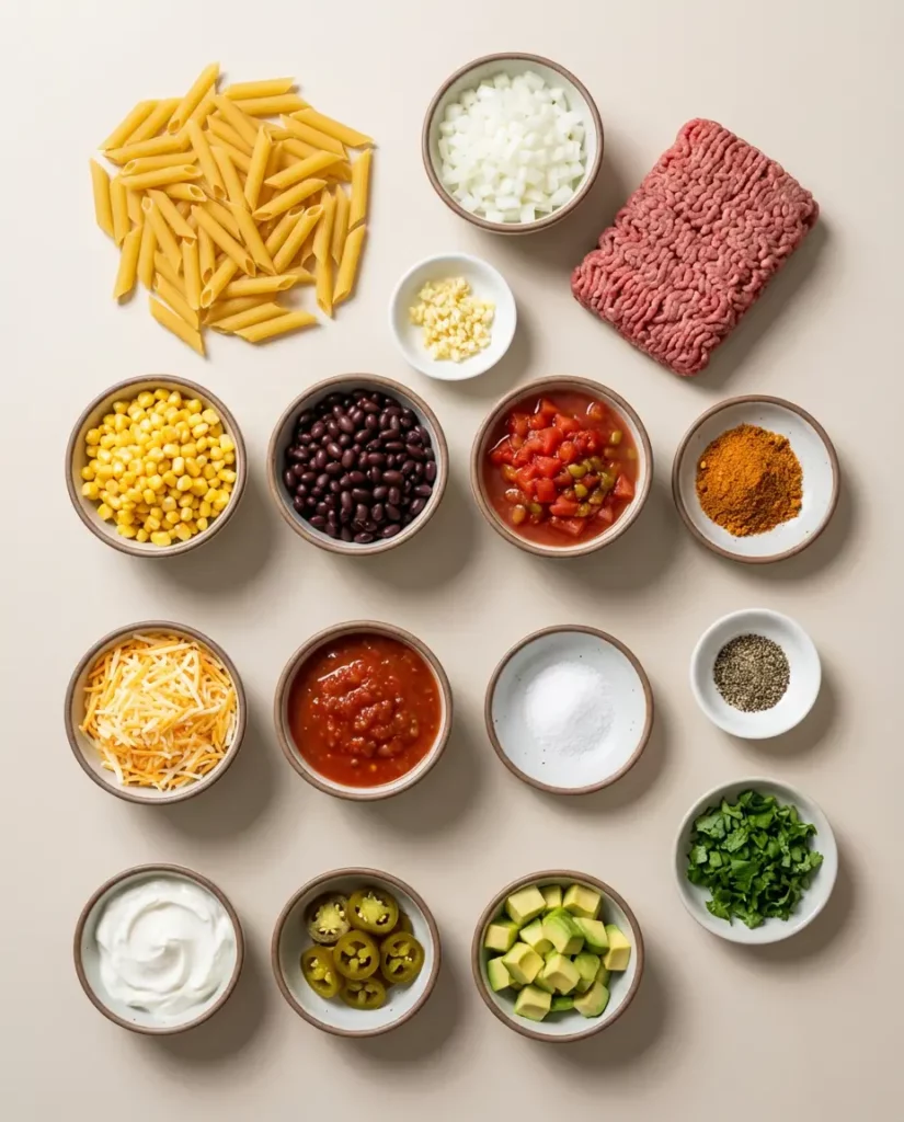 This recipe blends American pasta bakes with classic Tex-Mex flavors, bringing together two comfort-food traditions. Tex-Mex cooking—known for bold spices, melty cheese, and familiar pantry ingredients—pairs beautifully with pasta casseroles, which originated from American home-cooking trends in the early 20th century. Today, dishes like this symbolize American comfort food, blending convenience with big, satisfying flavor.